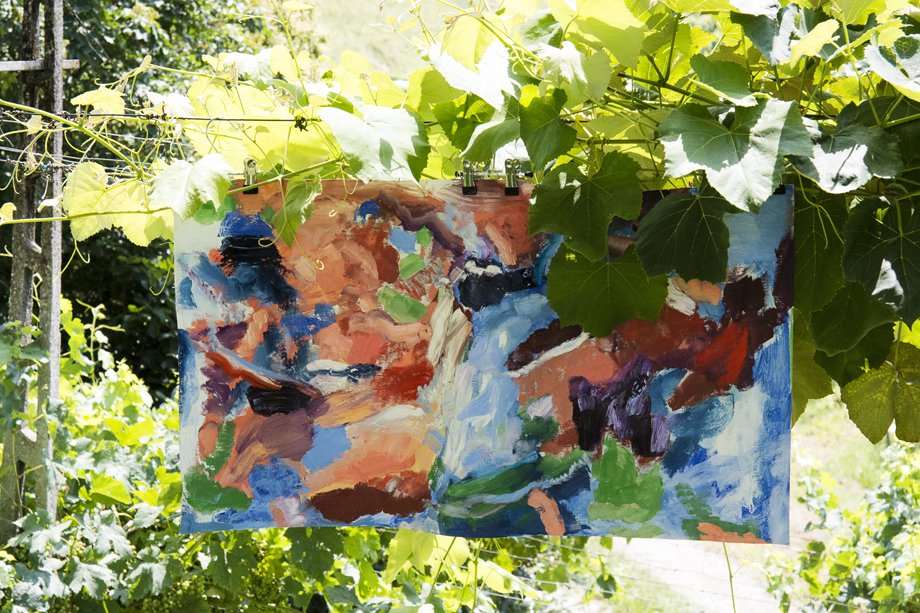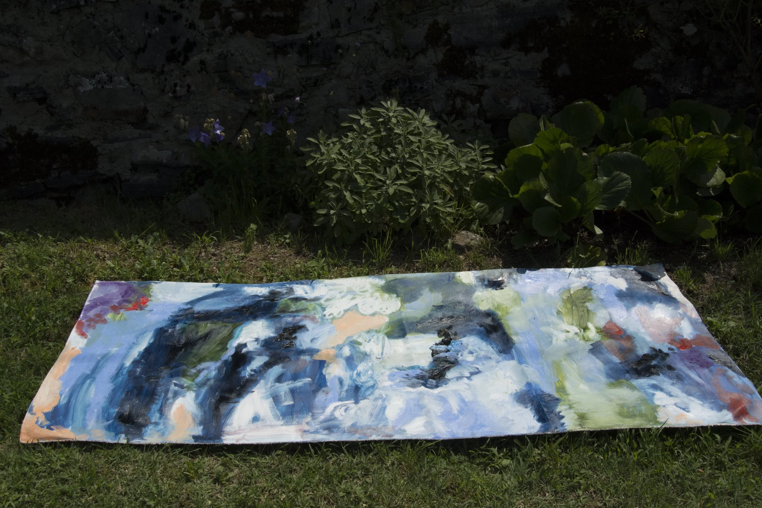 My work inside the studio at RUC overlooking the vineyards below. This is Echo of the Valley (Night) in progress before completion.