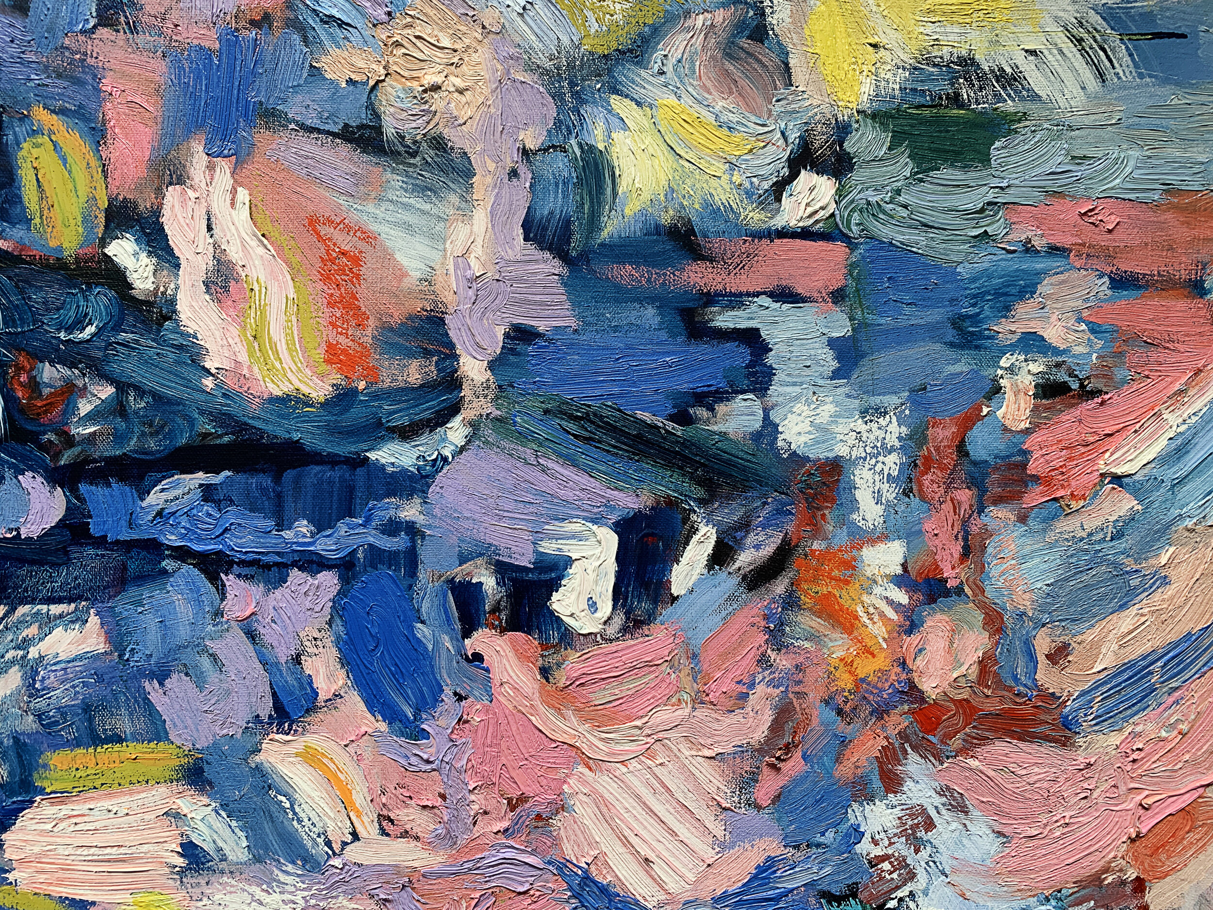 When I began my body of work titled, “Nine” last year, it initially reflected how I was feeling as an individual. As the months went on, the work started to reflect the collective, global mood of us all. My new collection which I’ll be sharing soon, continues to explore themes of self-reflection, the human condition, and identity. I’m using my materials, specifically thick layers of oil paint and oil pastel, as an active participant in the paintings that explore a yearning to connect with each other after living in an extended period of isolation. Like Neruda, my longing for mutuality and connection with others during this incredibly trying time impelled me to create art in a style that deviated so much from what I had done before. And for that I am thankful.